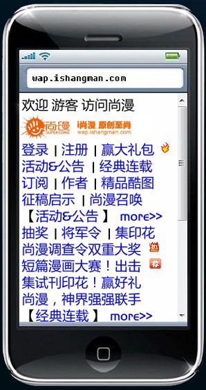 发布时间:2016-10-212010年10月18日,《尚漫》杂志的无线官网(wap.ishangman.com)正式上线,广大原创漫画爱好者可以用手机登陆该网站在线观看漫画连载、参加编辑部活动、查看公告信息。至此,《尚漫》杂志已初步打造了集漫画杂志、i尚漫web网站、i尚漫wap网站三位一体的全媒体平台基础构架,实现了打造立体的中国原创漫画新空间的初步计划。手机在线看漫画,全新动漫体验。 i尚漫无线官网支持目前市面上的大多数手机浏览器,...详情>>