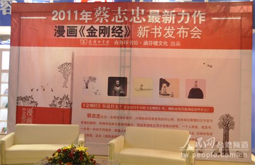 发布时间:2016-10-21台湾著名漫画家蔡志忠新作《漫画金刚经》新书发布会现场。 台湾著名漫画家蔡志忠携新作《漫画金刚经》亮相,并同时举行了隆重的新书发布仪式。会上,蔡志忠就新作进行了全面介绍,详细阐述了5175字的《金刚经》对现实社会的重要影响。他特别提到,佛经不光是用来念的,更重要是用来实践的。 蔡志忠一生研读佛学著作,对佛经禅语有着独到的心得,他将《金刚经》中艰涩难懂的文字译成易懂的词句,并配以蔡...详情>>